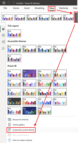 - In Power BI Desktop, go to View → Themes → Browse for themes.