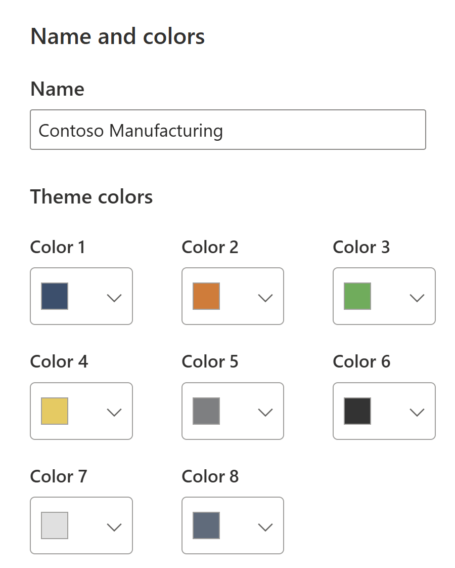 Start by identifying the 8 base colors that will cycle through visuals. For Contoso Manufacturing, we chose: